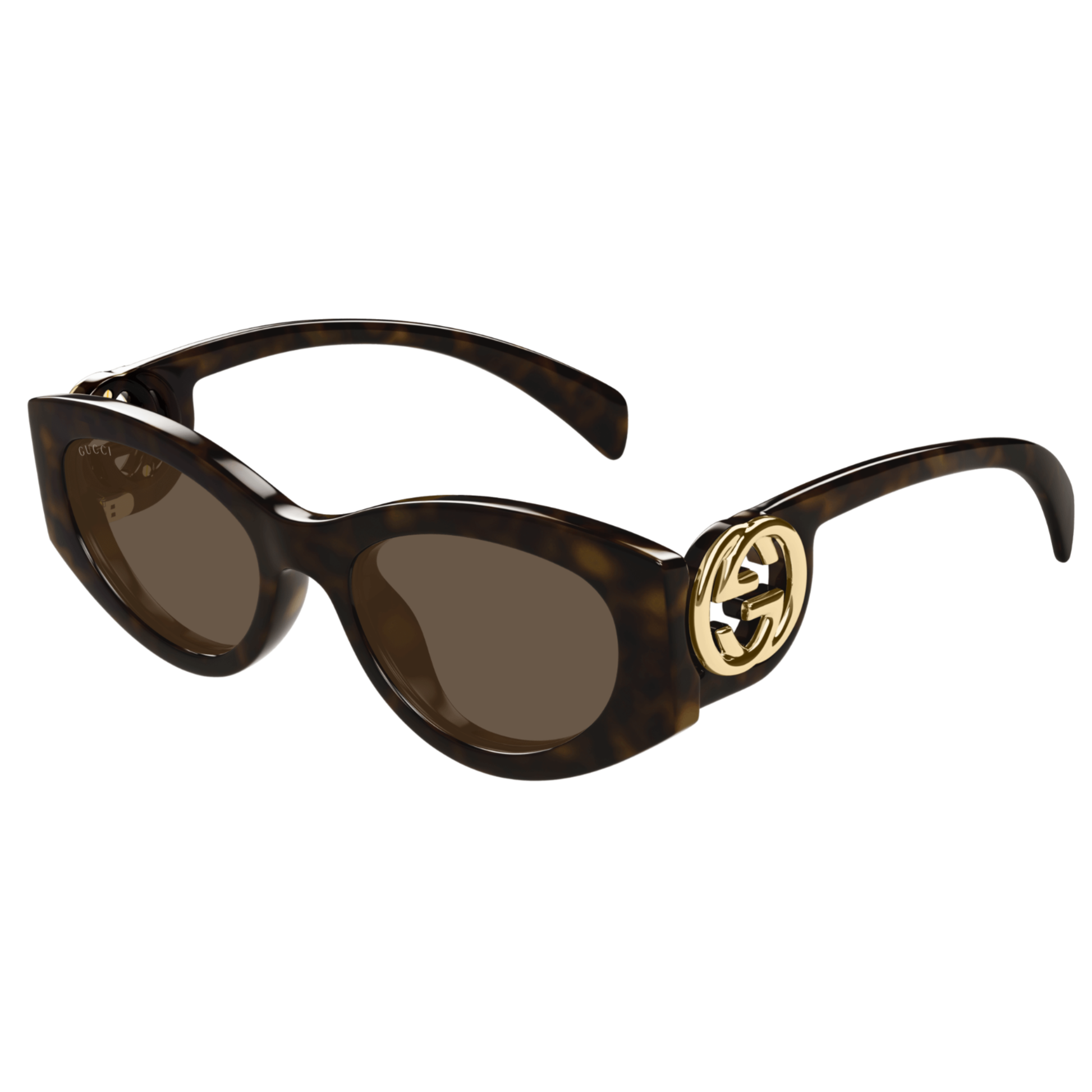 "Make a statement with GG1691S! These sleek sunglasses feature a thin dark havana temple and brown lenses. With superb branding on the sides, you'll stand out in style. Protect your eyes while looking cool and confident.